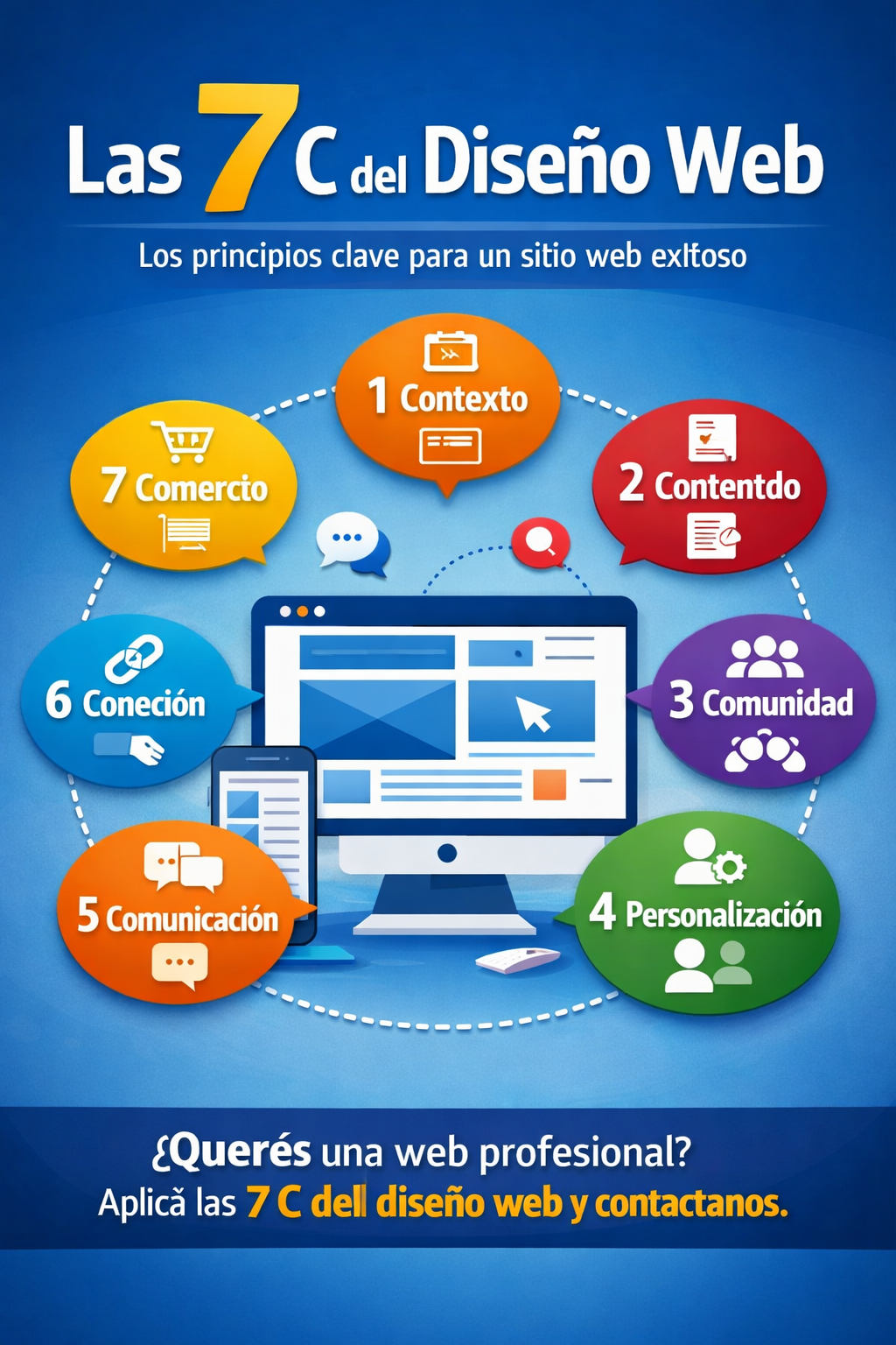 El diseño web va mucho más allá de lo visual. Un sitio puede verse atractivo, pero si no está bien estructurado, no comunica correctamente o no guía al usuario, difícilmente logre resultados. Para evitar esto, existe un modelo ampliamente utilizado llamado las 7 C del diseño web.